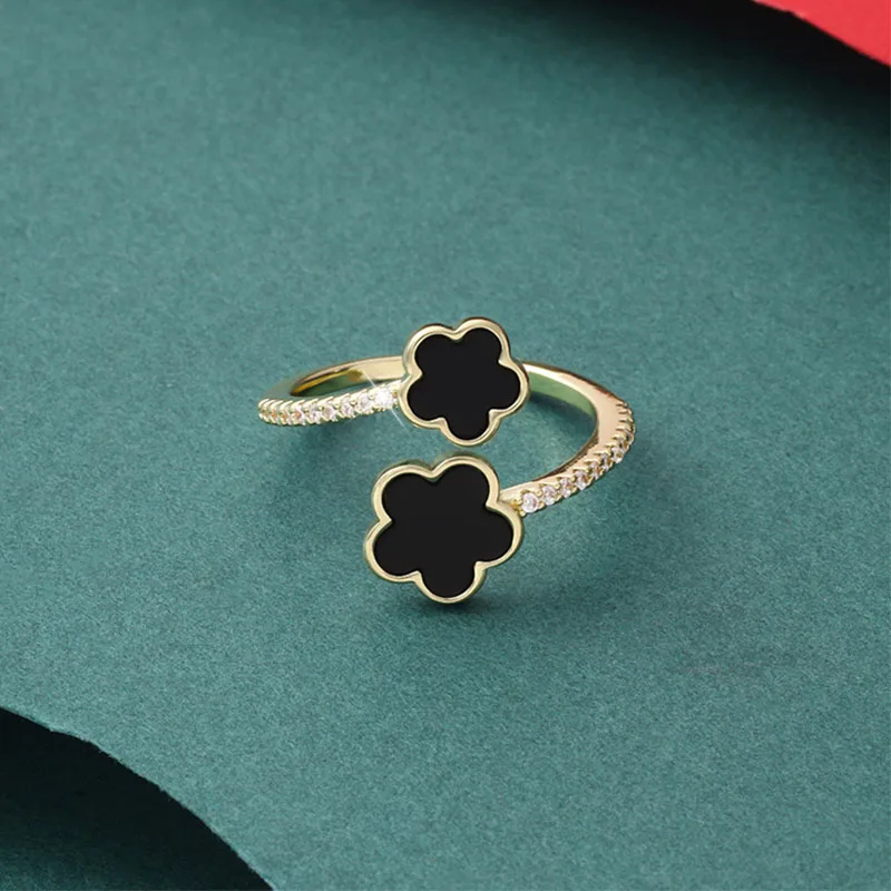 La bague trèfle à 5 feuilles noire ouverte est une pièce raffinée qui combine style et élégance. Ses deux trèfles noirs subtilement placés ajoutent une touche moderne et minimaliste à cette bague. Avec son design ouvert et ajustable, elle s’adapte facilement à toutes les tailles, tout en étant confortable à porter. Fabriquée en métal doré, elle est idéale pour une soirée chic ou pour ajouter une touche sophistiquée à votre tenue quotidienne.