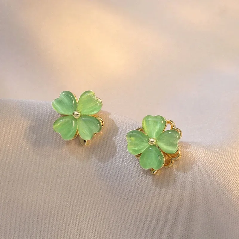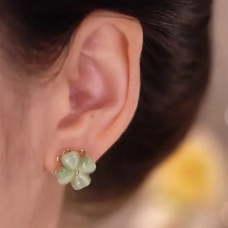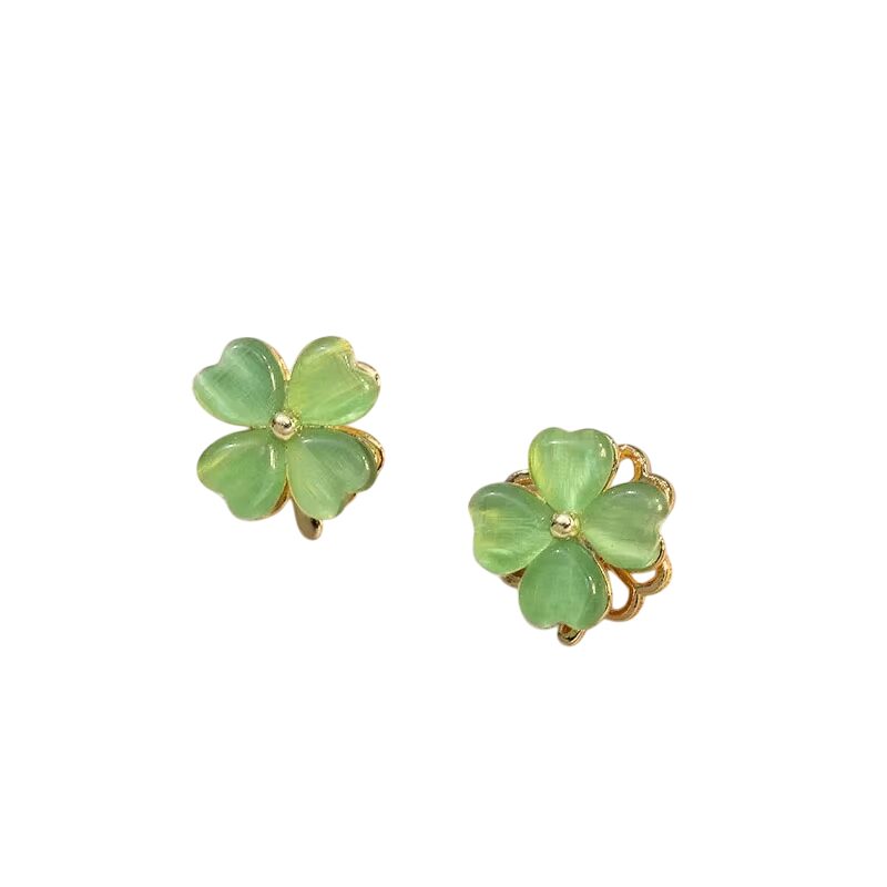 Boucles d’oreilles dorées avec trèfles verts clairs
