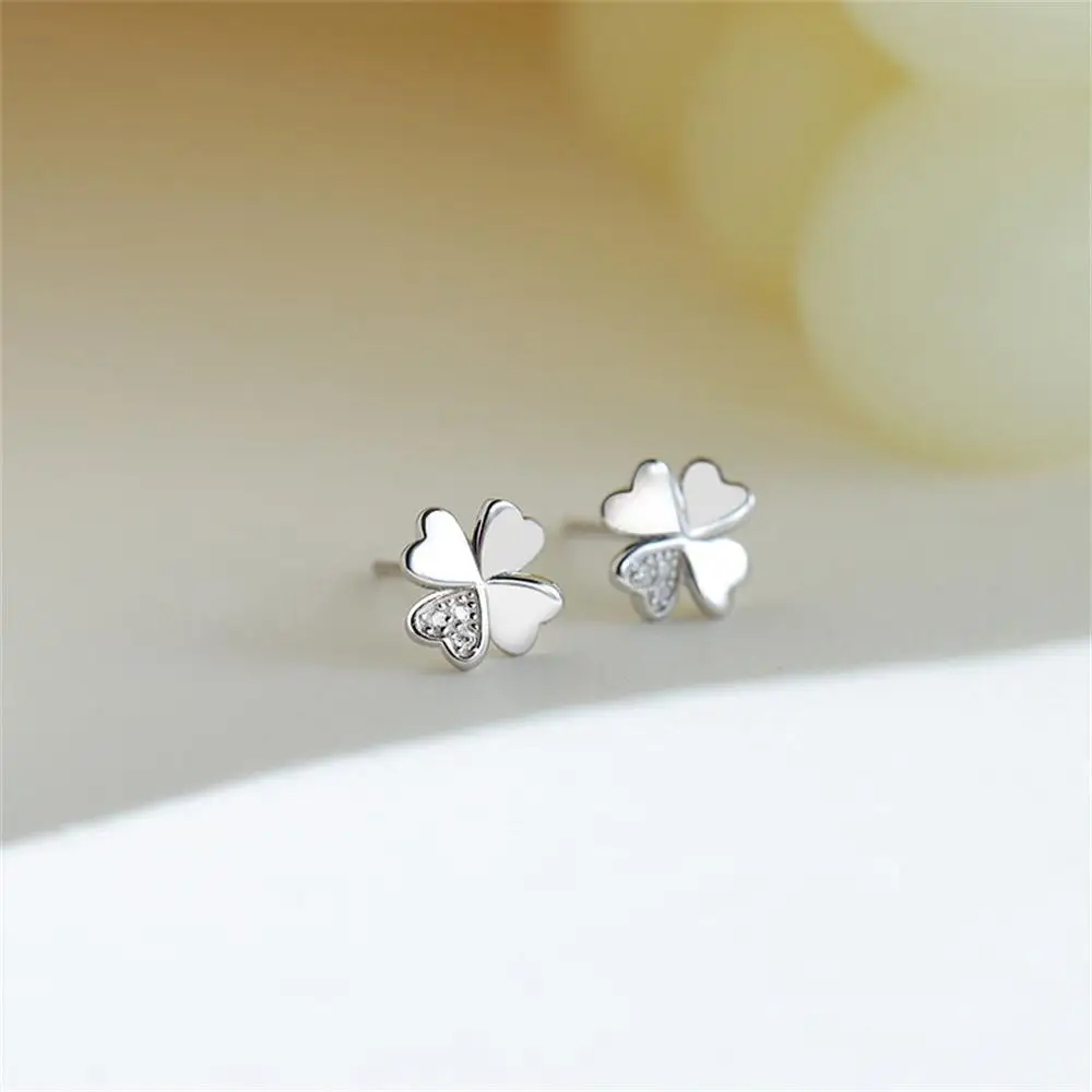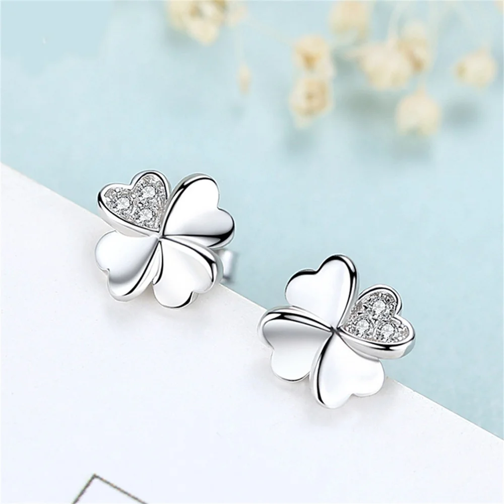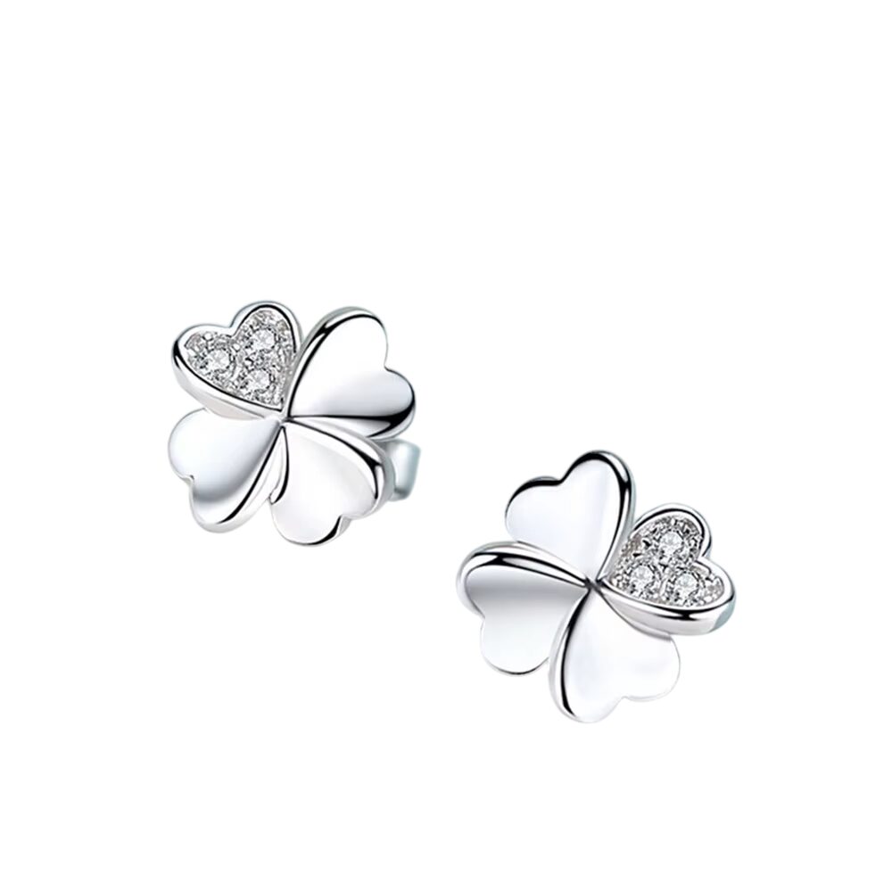 Boucles d’oreilles trèfle 4 feuilles classiques argentées avec cristaux