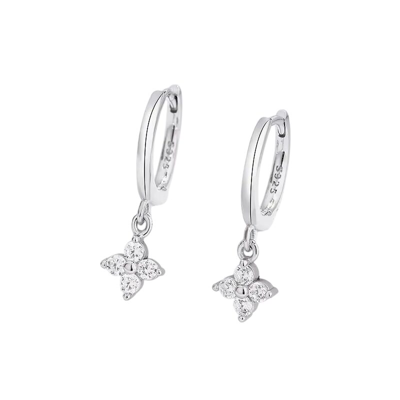 Boucles d’oreilles trèfle 4 feuilles pendants argentés