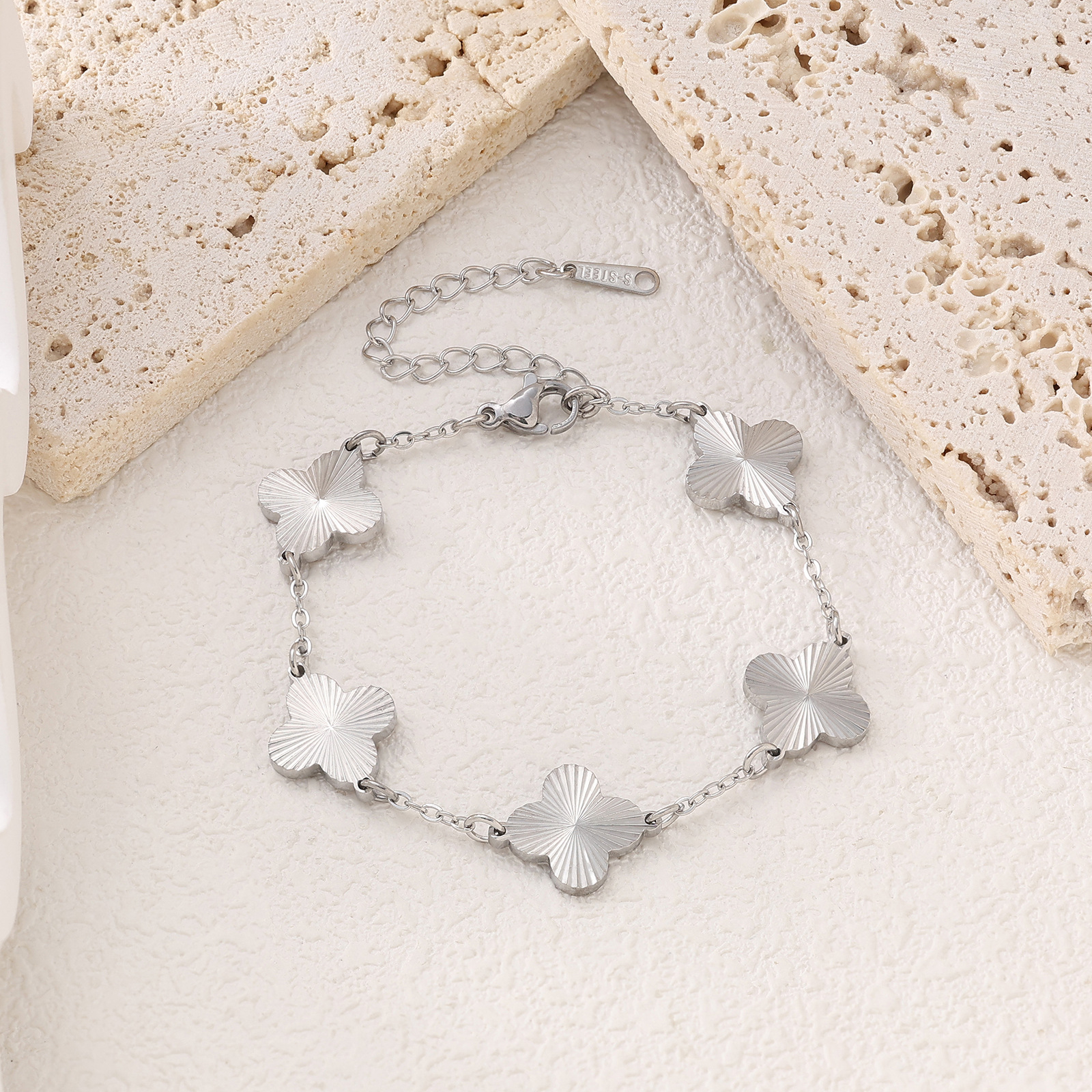 Bracelet trèfle 4 feuilles argenté plein