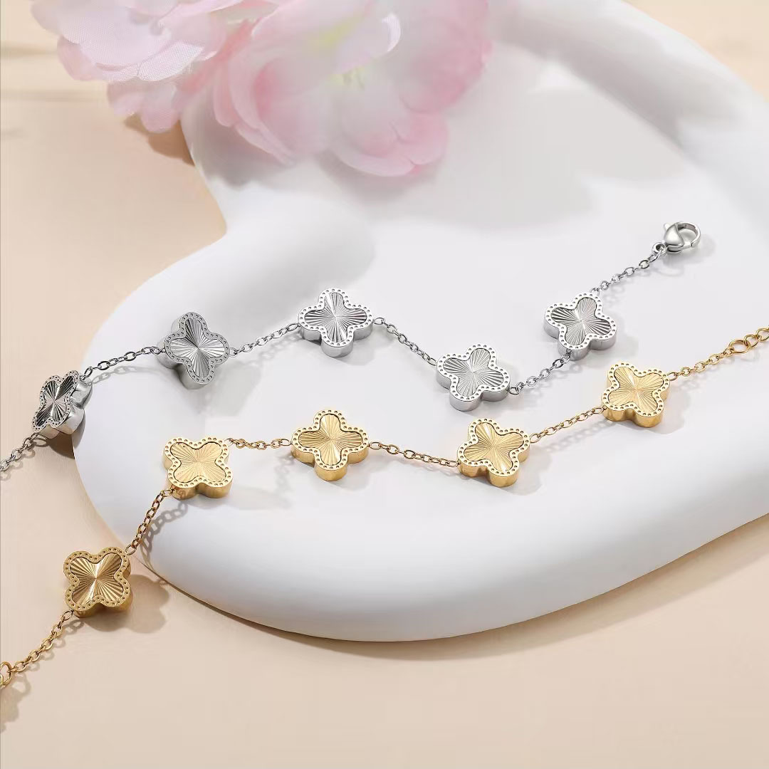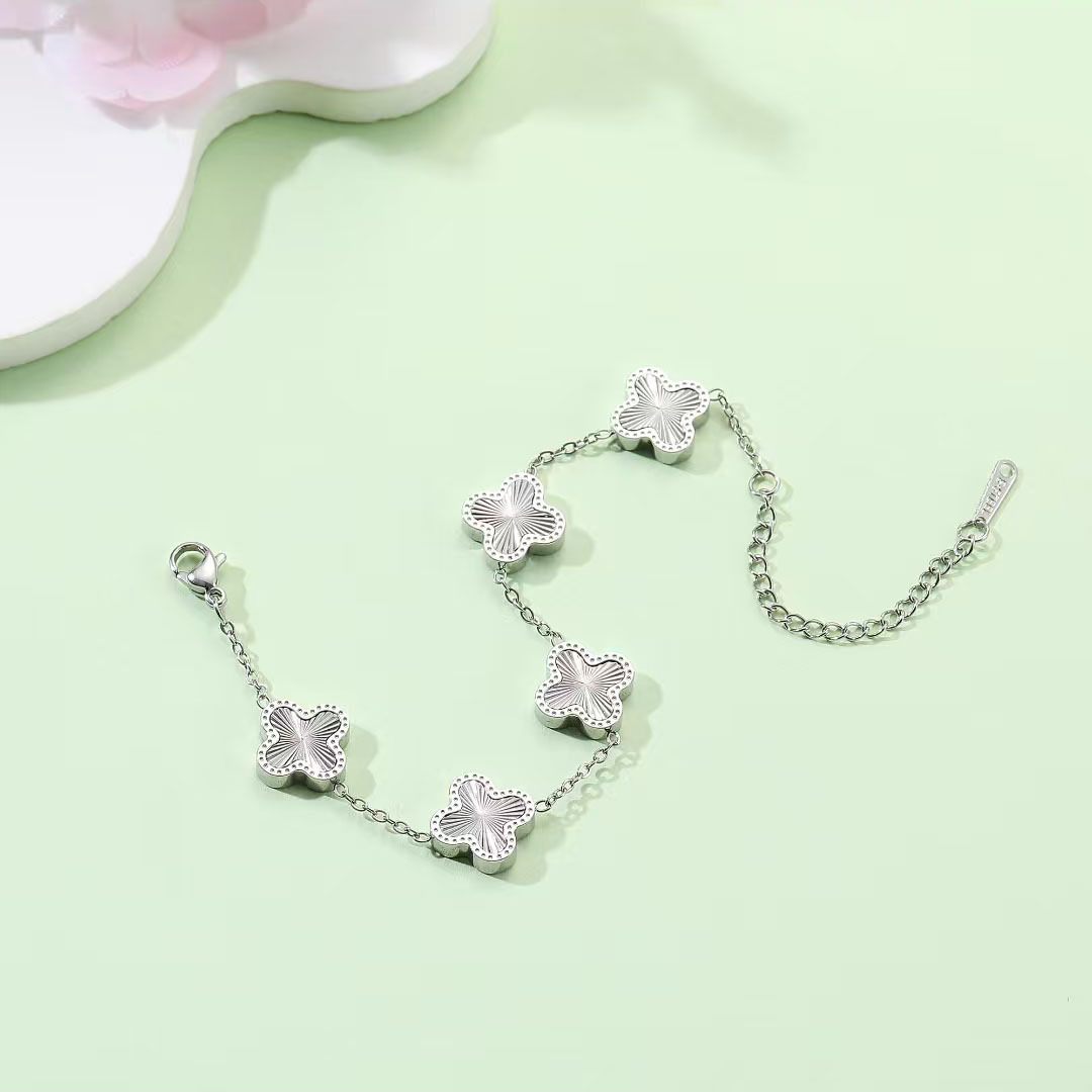 Vous cherchez une pièce unique qui allie style et symbole de chance ? Ne cherchez plus, le Bracelet trèfle à 4 feuilles classique argenté est fait pour vous ! Inspiré par la légende envoûtante des trèfles à quatre feuilles, ce bracelet évoque les valeurs fondamentales que sont le véritable amour, la santé, la gloire et la richesse. Chaque fois que vous le portez, il vous rappelle qu’avoir un trèfle à quatre feuilles, c’est posséder une part de chance. Avec son design élégant et raffiné, il s’adapte à toutes les occasions, que ce soit pour une sortie entre amis ou une journée de travail.