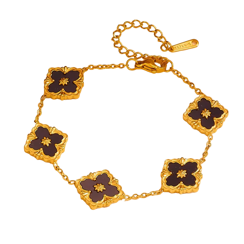 Bracelet trèfle à 4 feuilles noir et or luxe