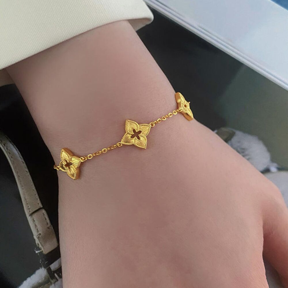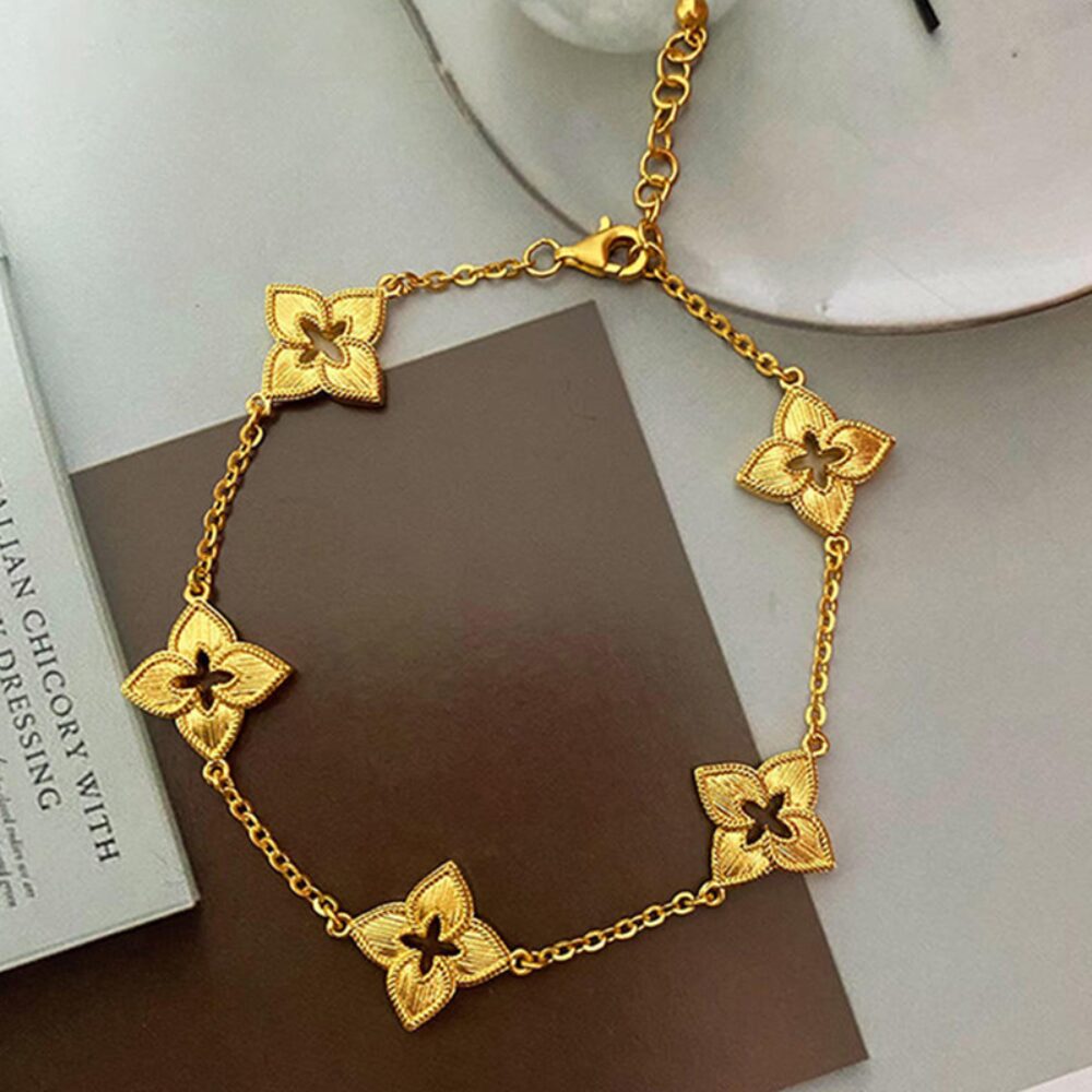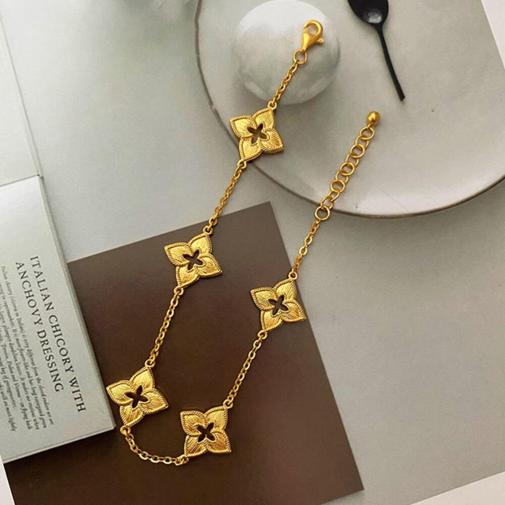En plus de son aspect esthétique, ce Bracelet trèfle à 4 feuilles troué doré se distingue par sa création raffinée en soie. La texture soyeuse ajoute une touche de sophistication, et les détails minutieusement travaillés vous assurent que toutes les attentions seront tournées vers vous. Que vous choisissiez de le porter avec une robe élégante ou avec une tenue décontractée, il saura s’adapter à chaque occasion. Ce bijou de style italienne court est un véritable hommage à l’élégance classique, évoquant une sensation de royauté qui ne manquera pas de faire tourner les têtes.
