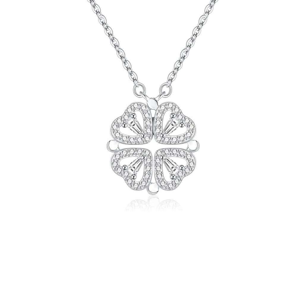 Collier trèfle coeur à 4 feuilles aimanté argent